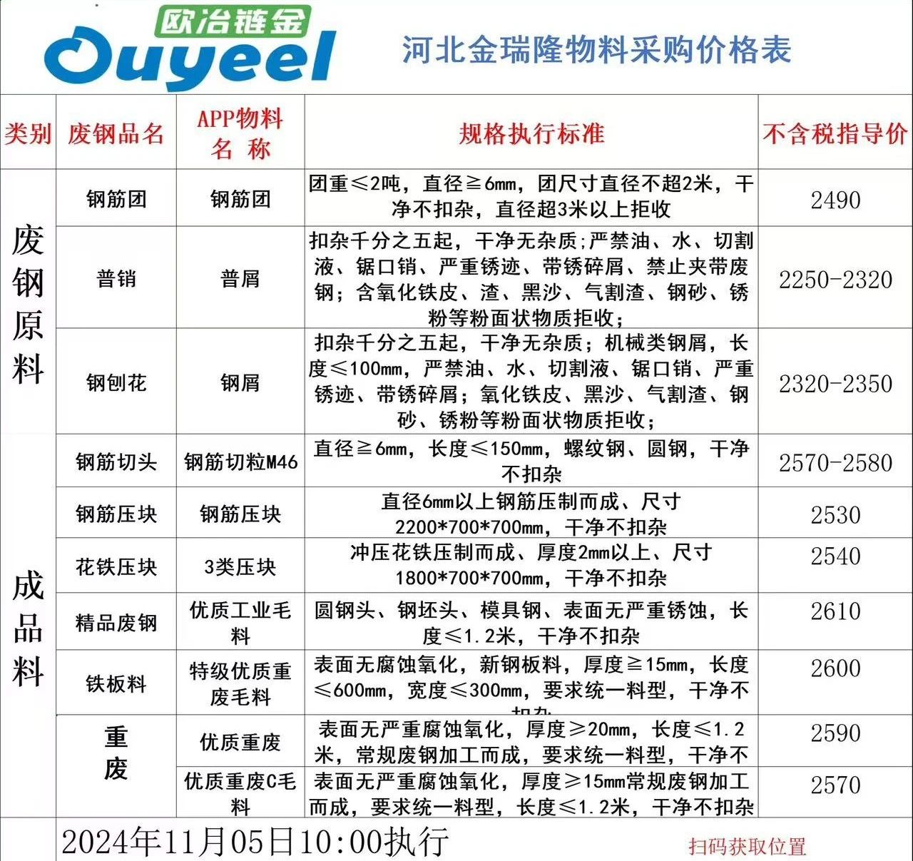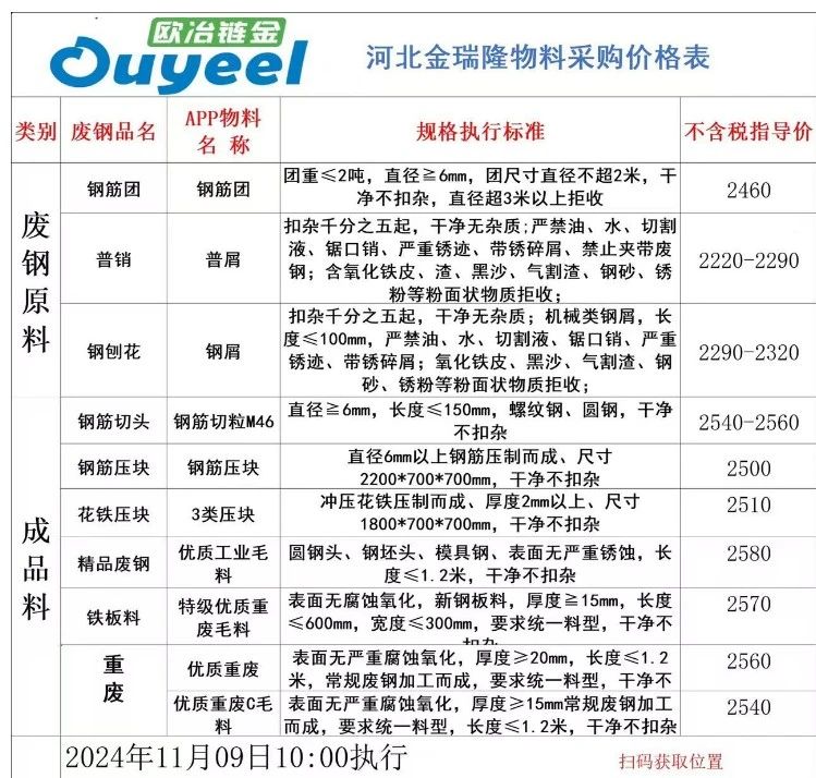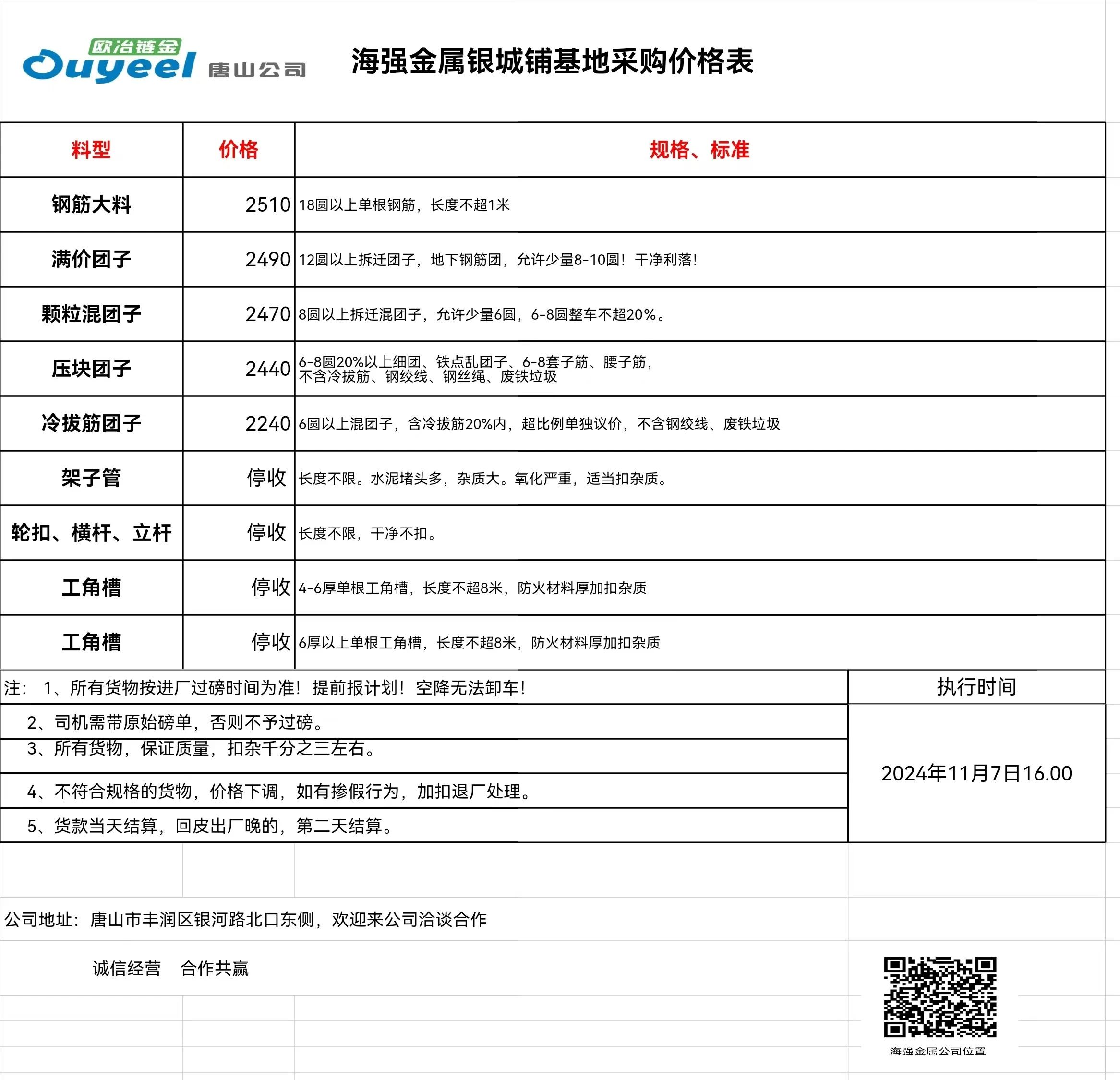****年**月*日河北唐山海强金属银城铺基地采购价格表