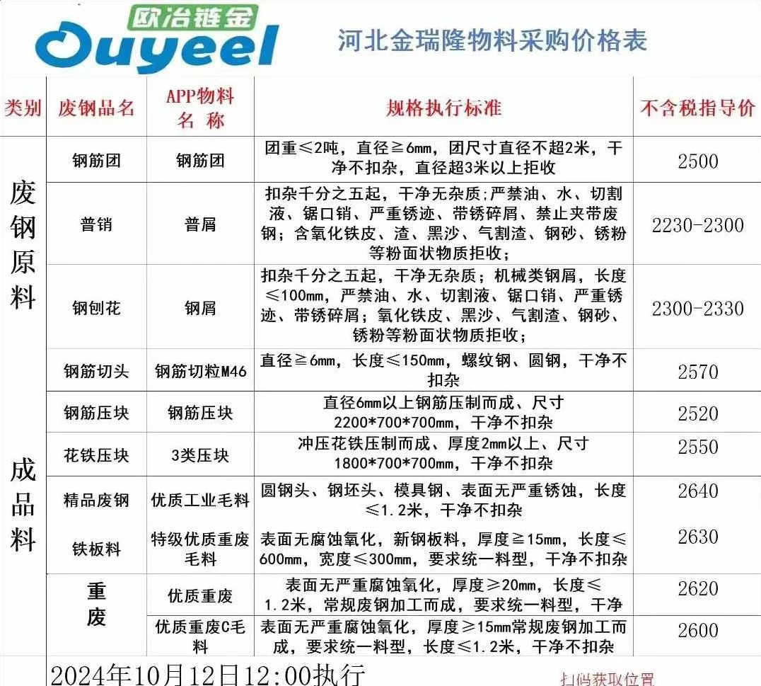注意:所有料型禁止油污,岩棉,钢丝绳,危险品,非铁物质等杂物