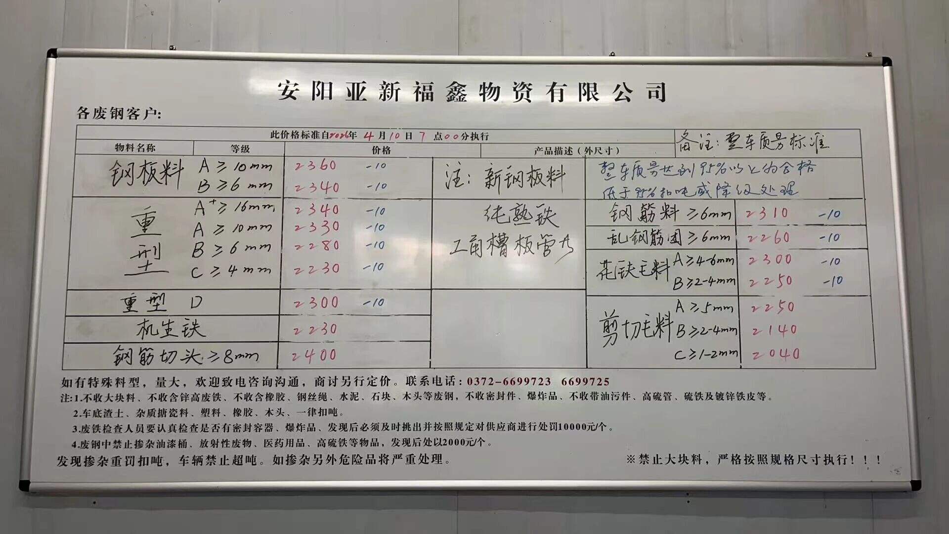*月*日河南安阳亚新废钢所有料型采购价下调**