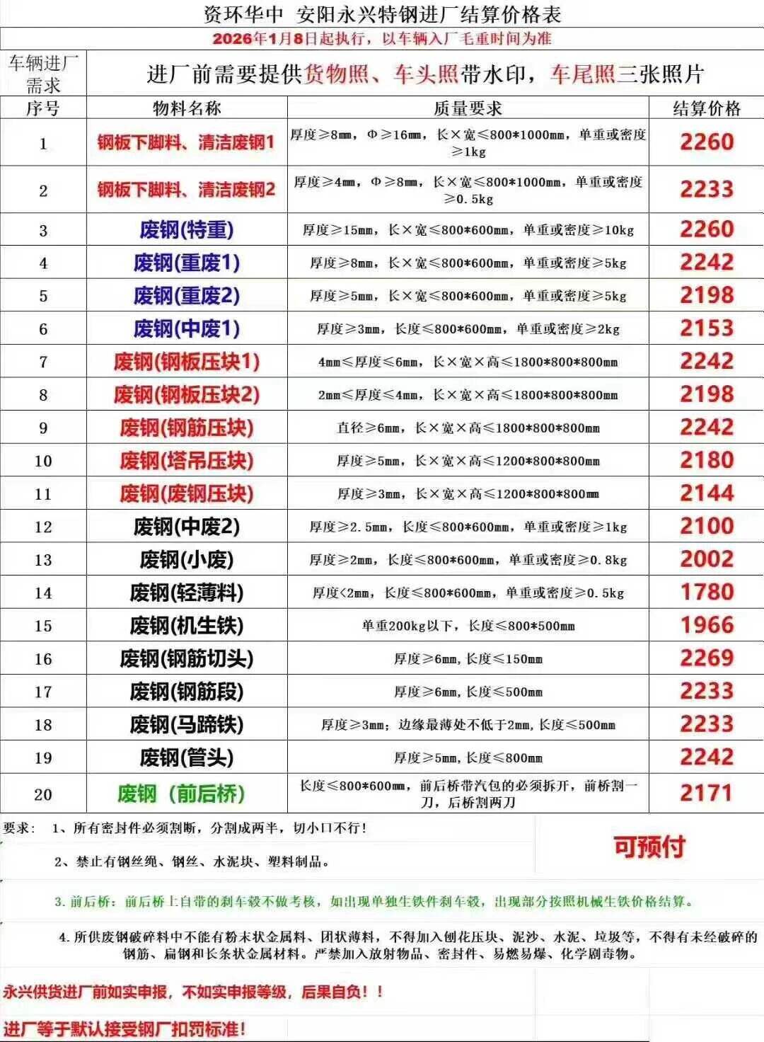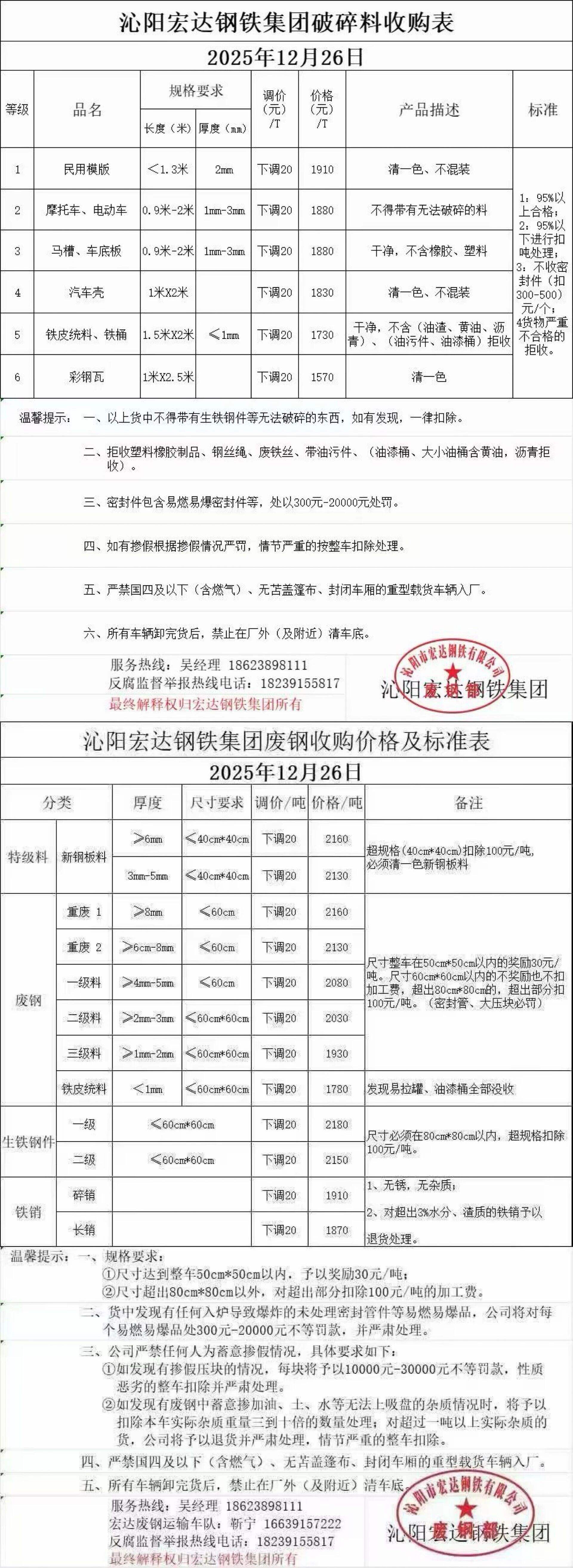 **月**日河南闽源所有废钢统一跌**