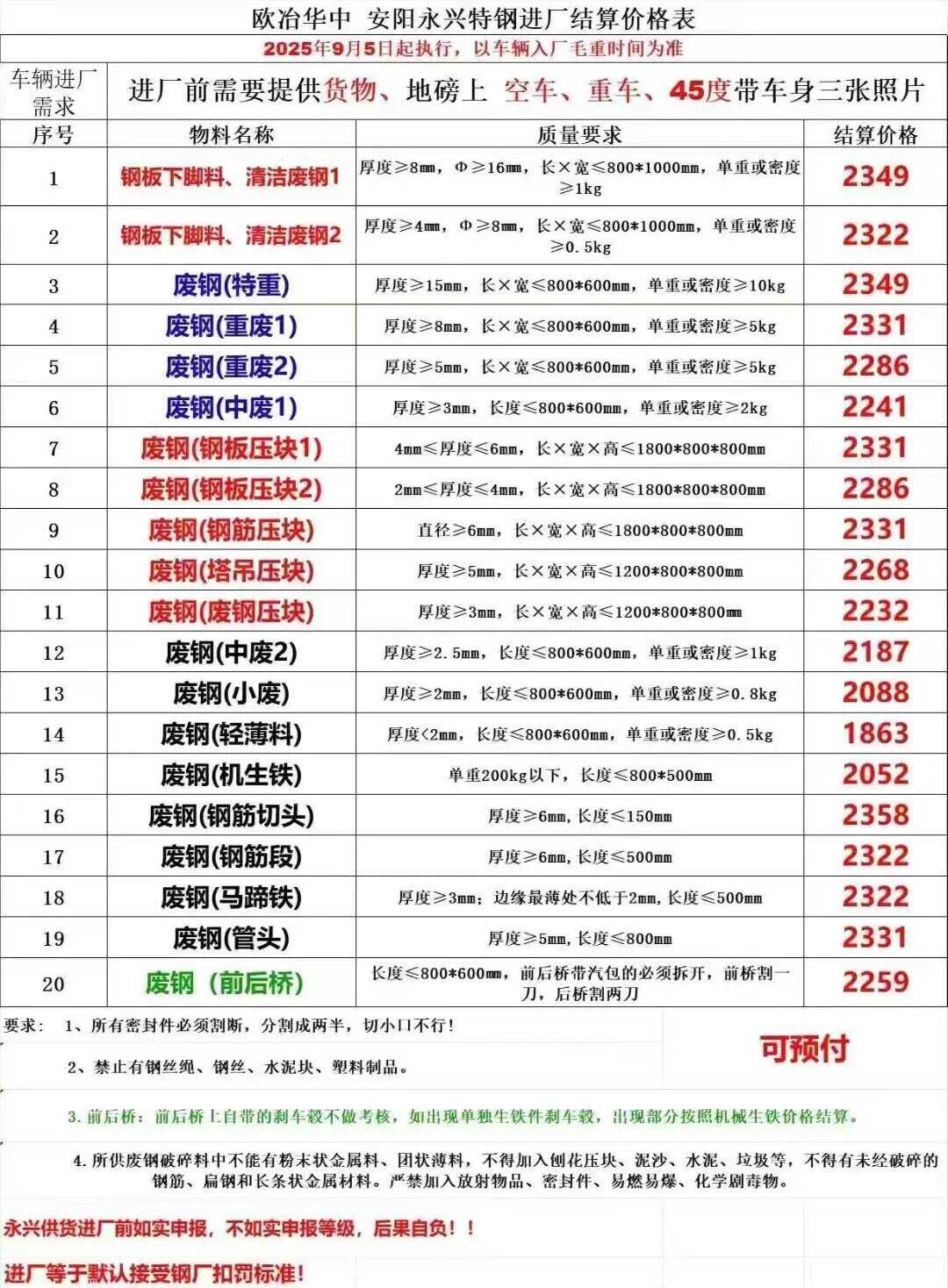 *月*日河南安阳亚新废钢涨**,详见价格表
