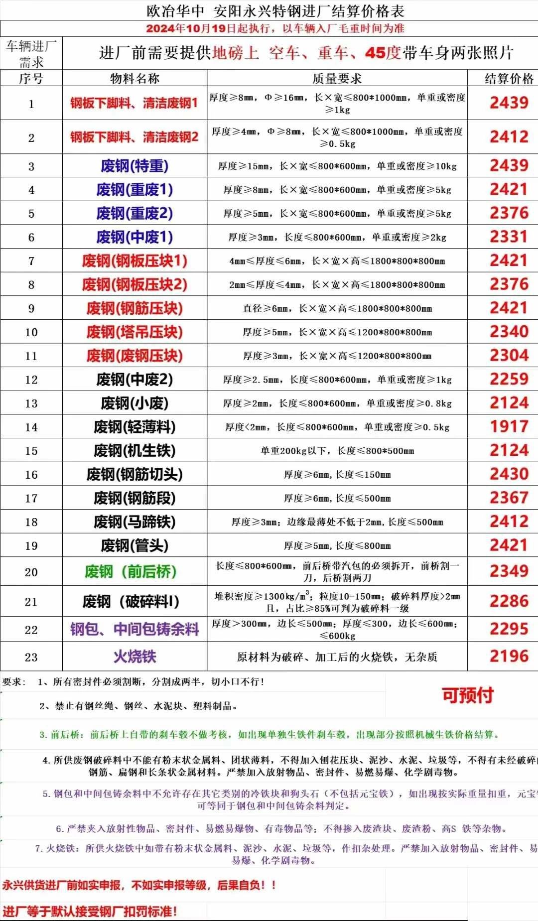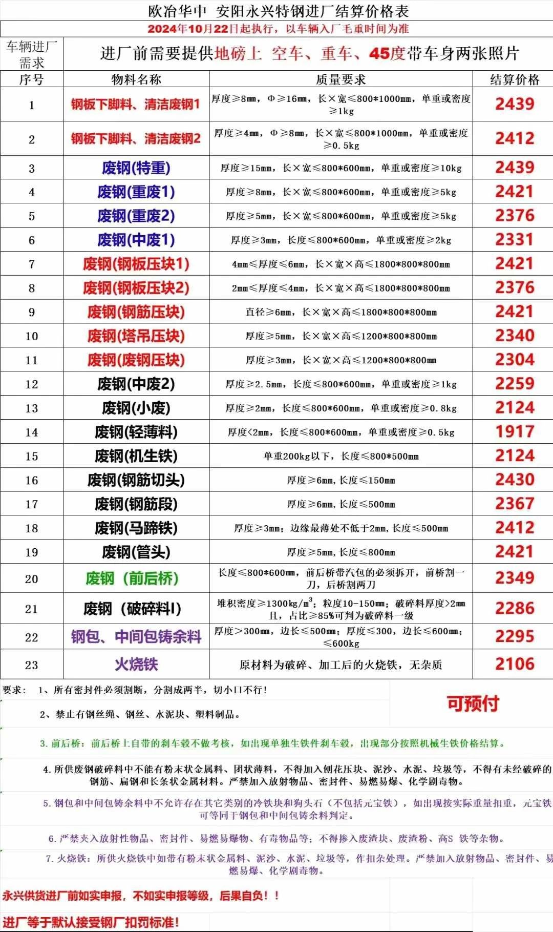 安阳新普通知,**月**日**点起,废钢所有料型下调**元/吨!