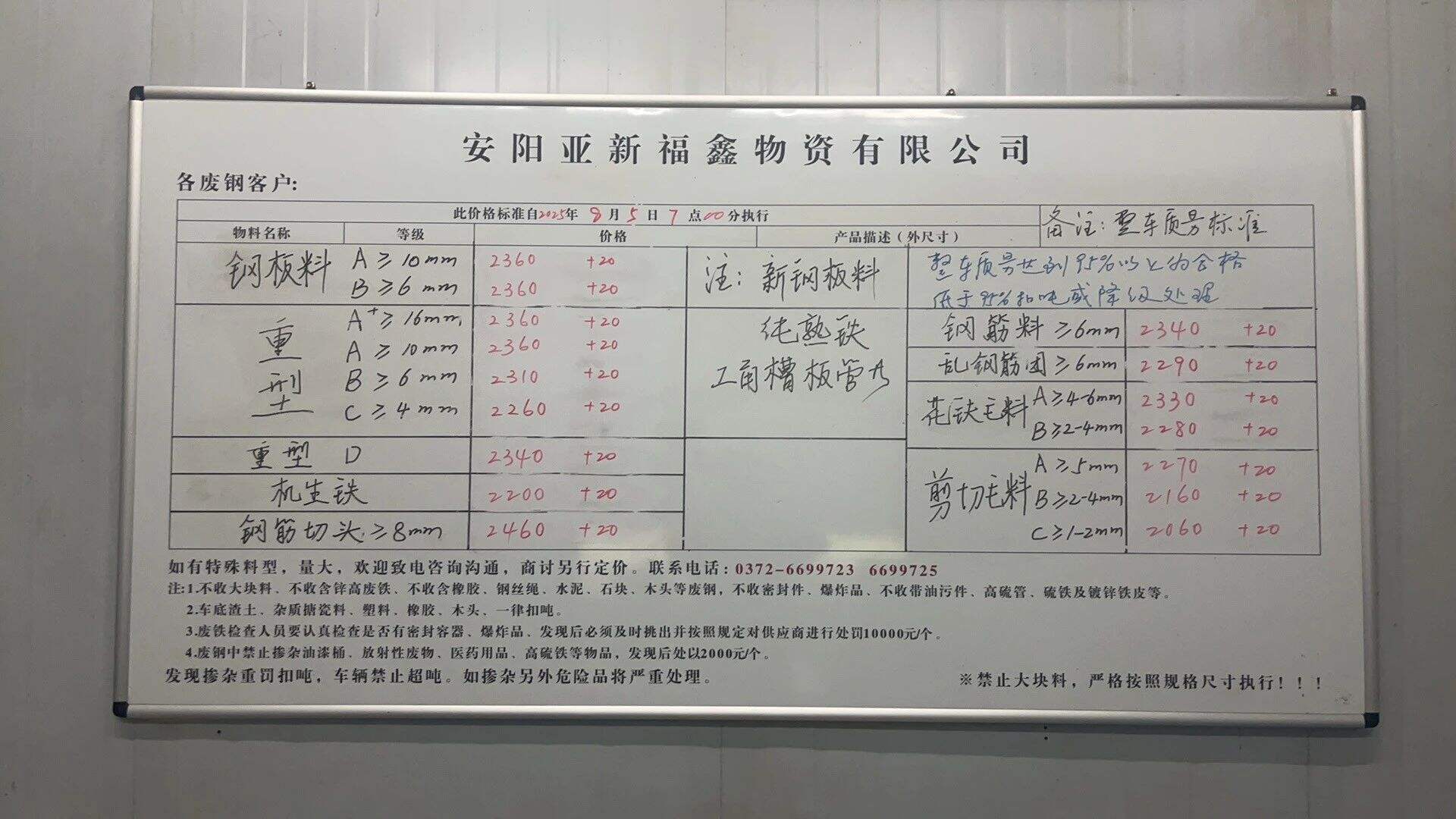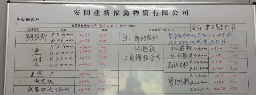 *日河南闽源废钢涨**,精品料****,优重废钢****,重型废钢****,中型废钢****,轻型废钢****,钢筋切头****冲豆****,矽钢片****无镀锌料及压块停收,新杂料压块停收,破碎料****-****,不含税。