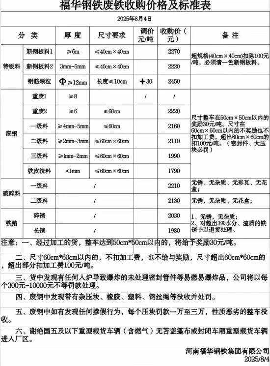 *日郑州福华废钢部分涨**:新钢板料****-****钢筋颗粒****,重废****一级料****二级料****三级料****破碎一级****、破碎二级****,碎销****、长销****。