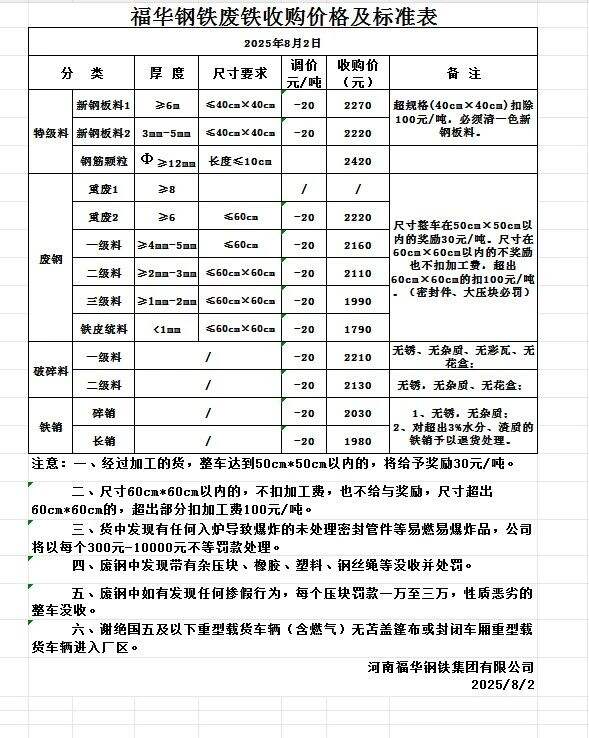 **日郑州福华废钢跌**,新钢板料****-****,钢筋颗粒****,重废****,一级料****,二级料****,三级料****,破碎一级****,破碎二级****,碎销****,长销****。