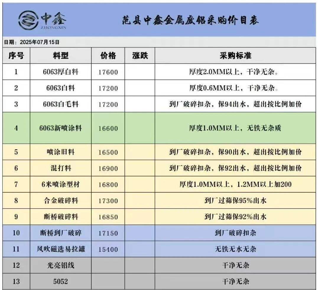 河南濮阳范县中鑫金属制品,*月**日今日废铝报价