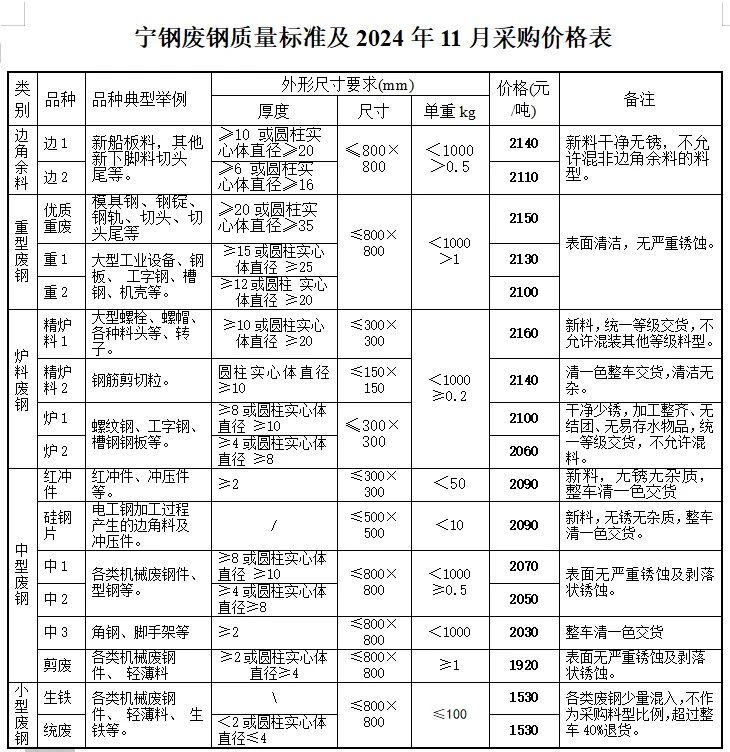 宁波钢铁废钢**月采-购最新价,边角料一****重一****重二****炉一****中一****中二****,不含税