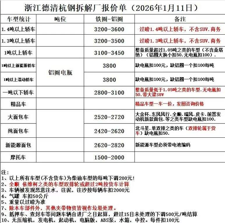 ****年*月**日浙江德清杭钢拆解厂报价