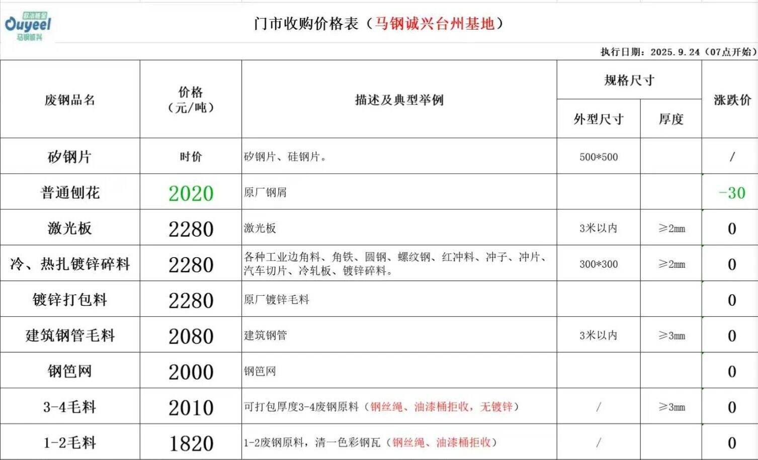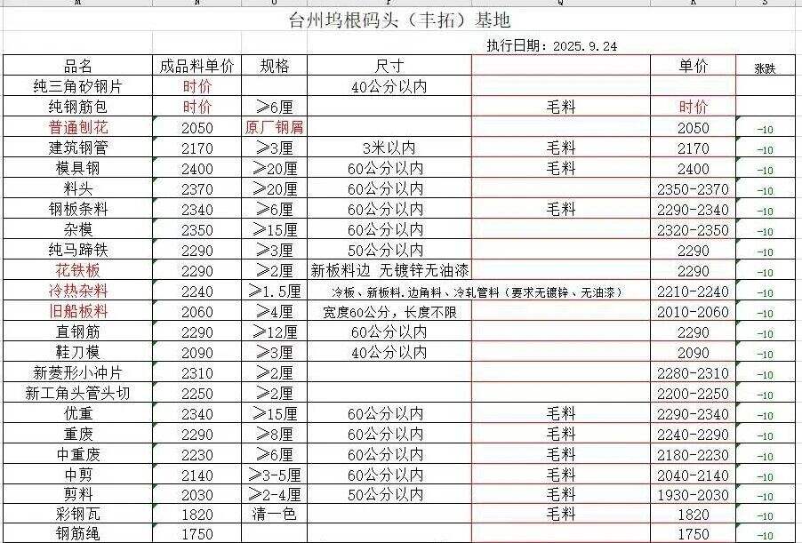 *月**日台州坞根码头(丰拓)基地:即时开始废钢统一下调**元