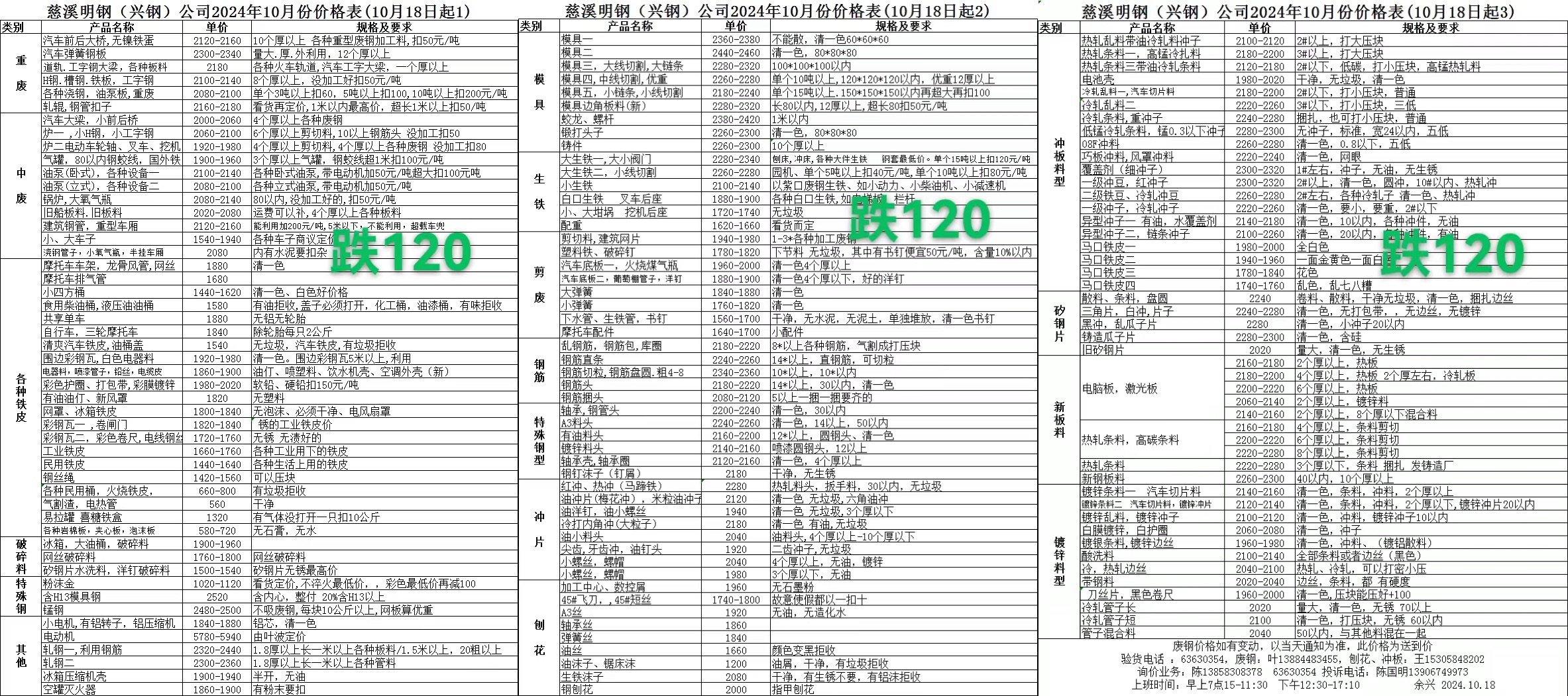 德清杭钢奥成废钢基地*号库成品报价:(油污件拒收)