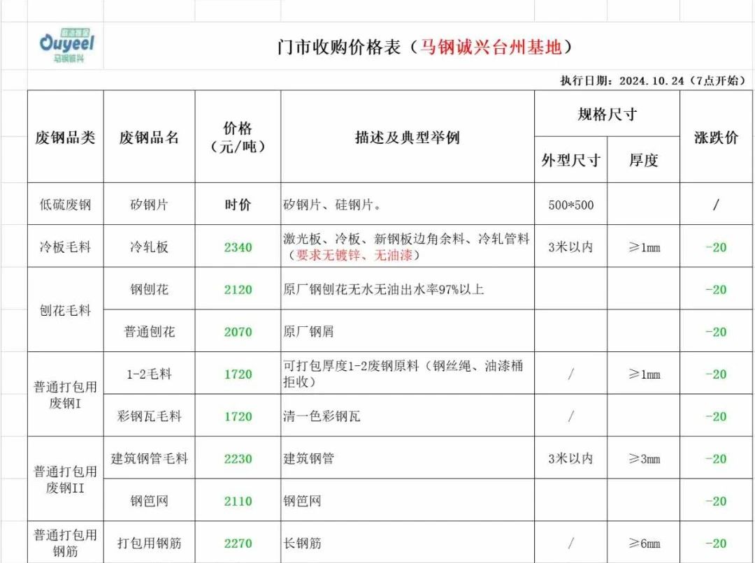 马钢诚兴台州基地**月**日所有品种下调**元/吨,请各位供应商知悉。