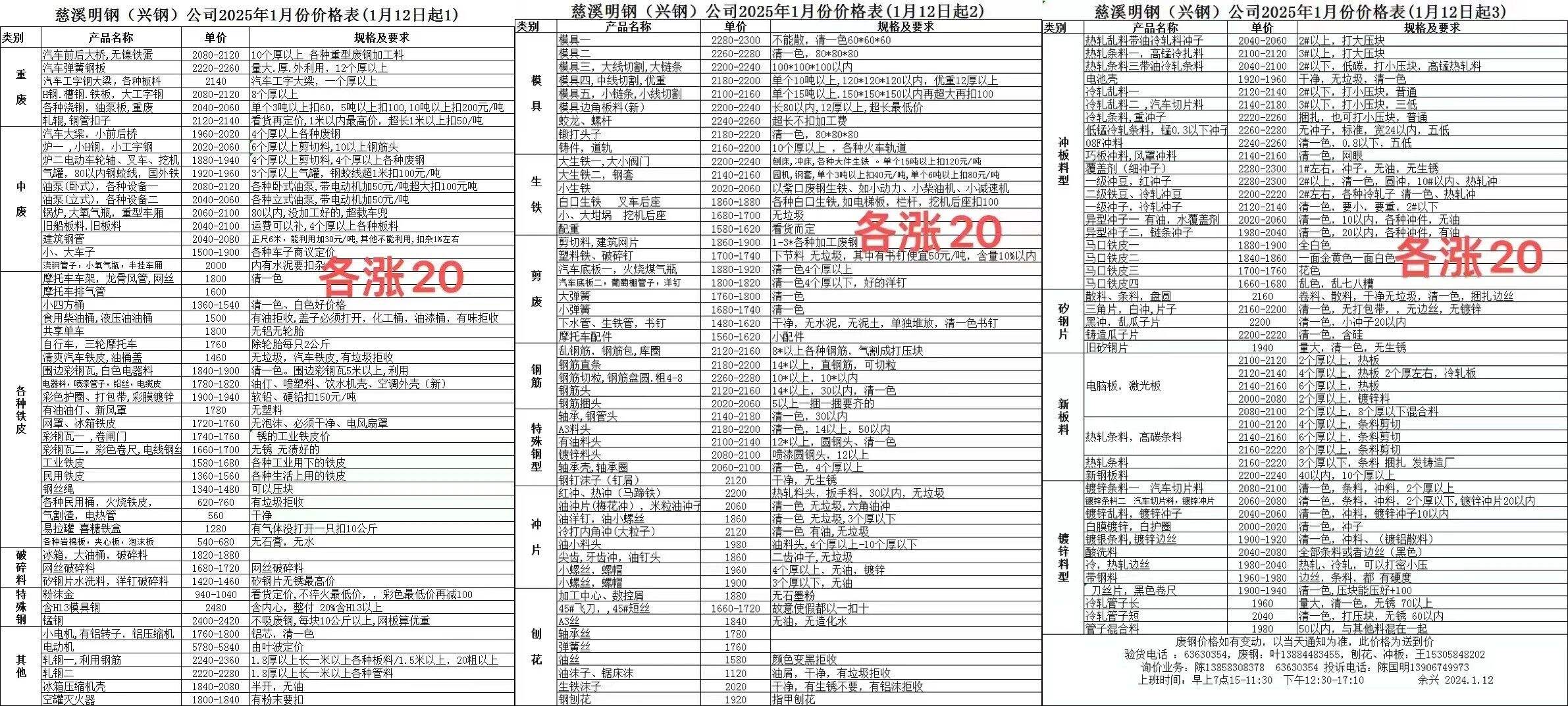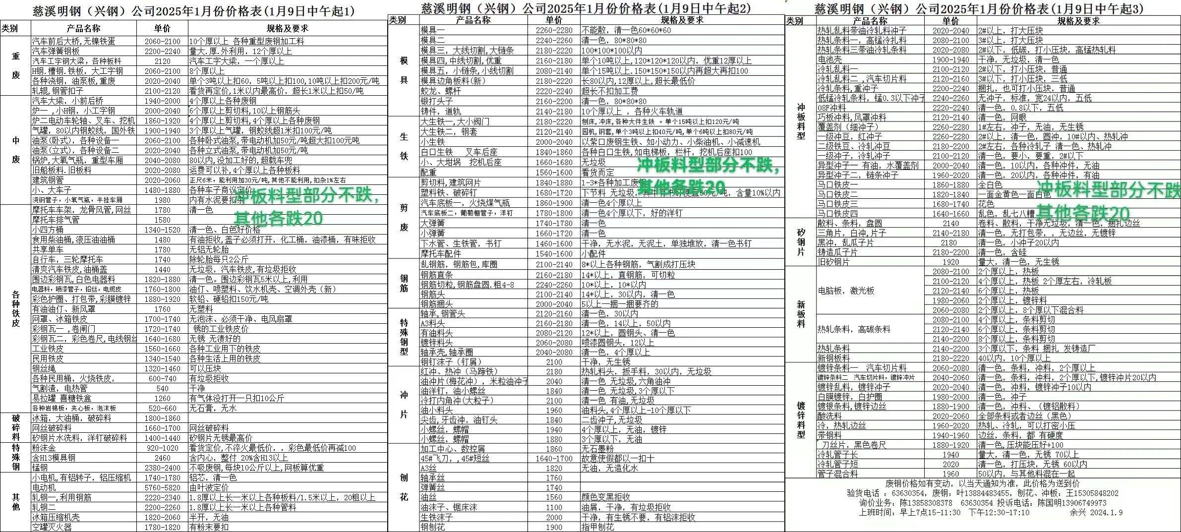 *日中午宁波兴钢废钢价格部分跌**,有价格表