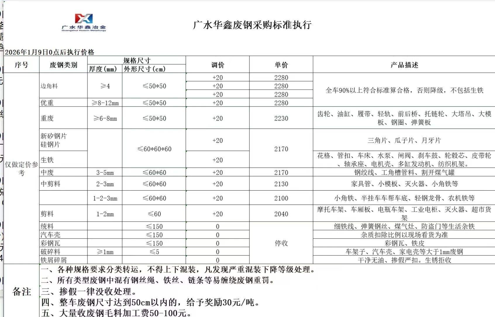 剪切料二****,剪切料三****,加工毛料一****,加工毛料二****,打包料****-****,铸钢生铁****-****