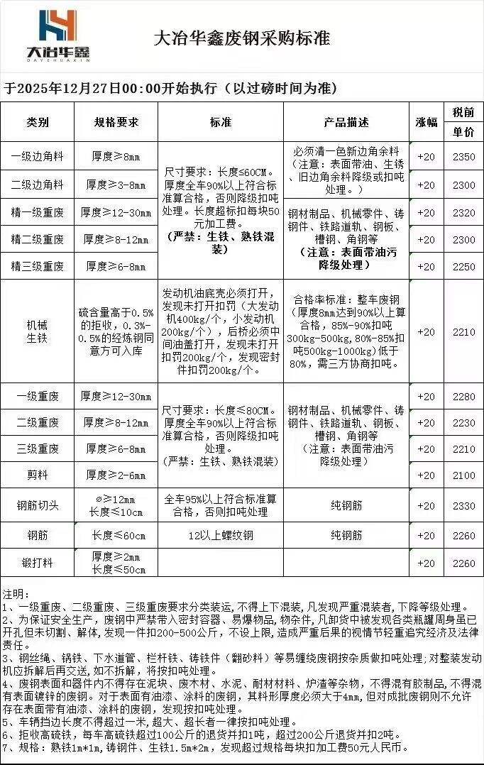 **日大冶华鑫废钢涨**: