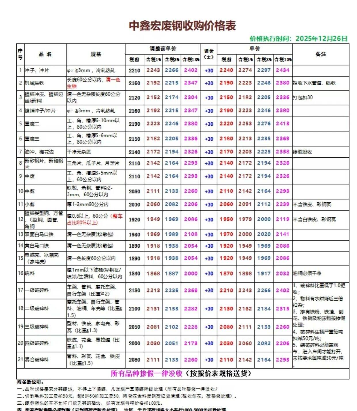统料停收,汽车壳停收,彩钢瓦停收,破碎料停收,铁屑碎屑停收,不含税。