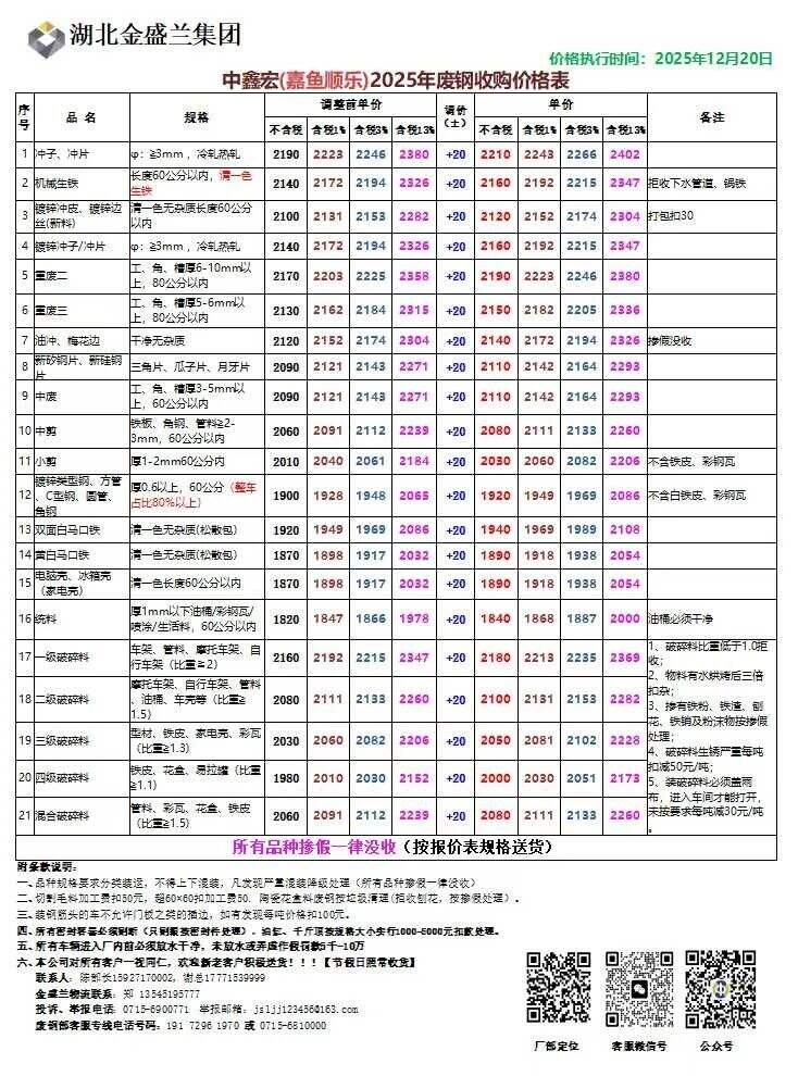 **月**日湖北嘉鱼顺乐废钢最新价涨**: