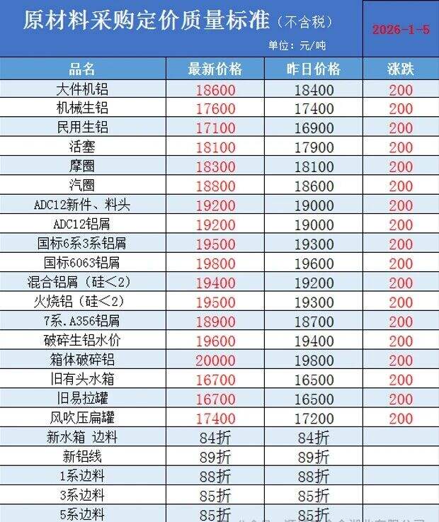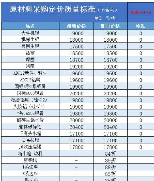 ****年**月**日顺博铝合金湖北有限公司最新价格