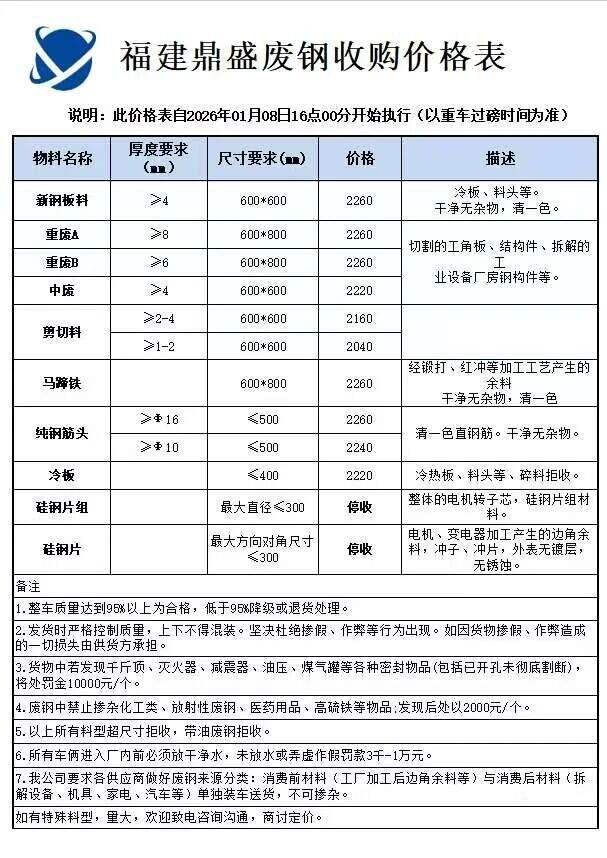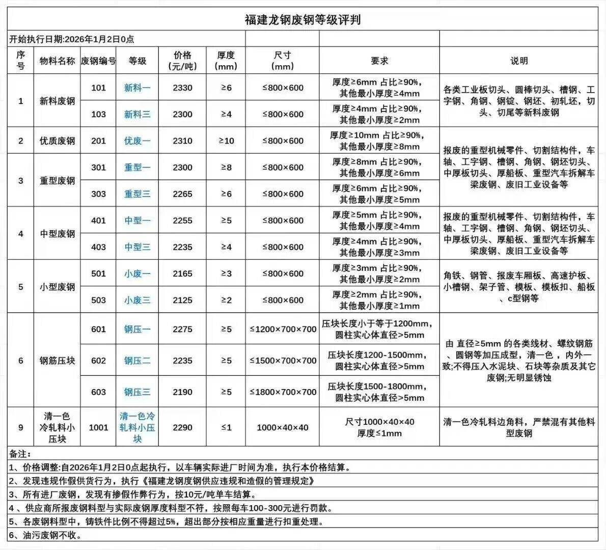 福建龙钢对废钢采购价格下调**元/吨,价格调整从****年**月**日零点开始执行。
