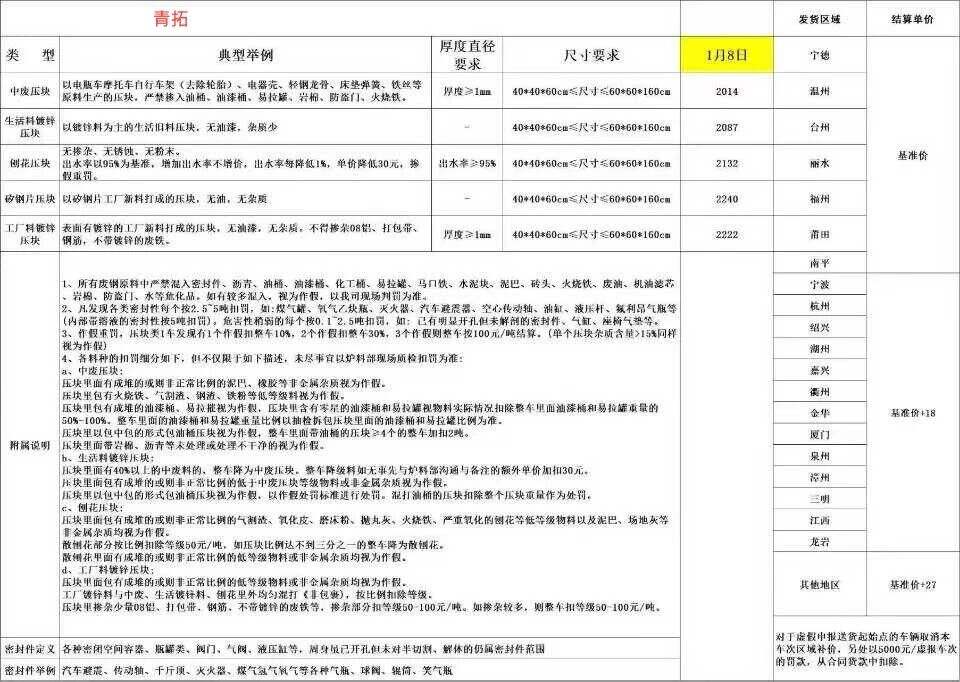 福建三钢:****年*月*日零时起,废钢价格统一执行新价格表;省内外所有等级废钢,均无另行加价。