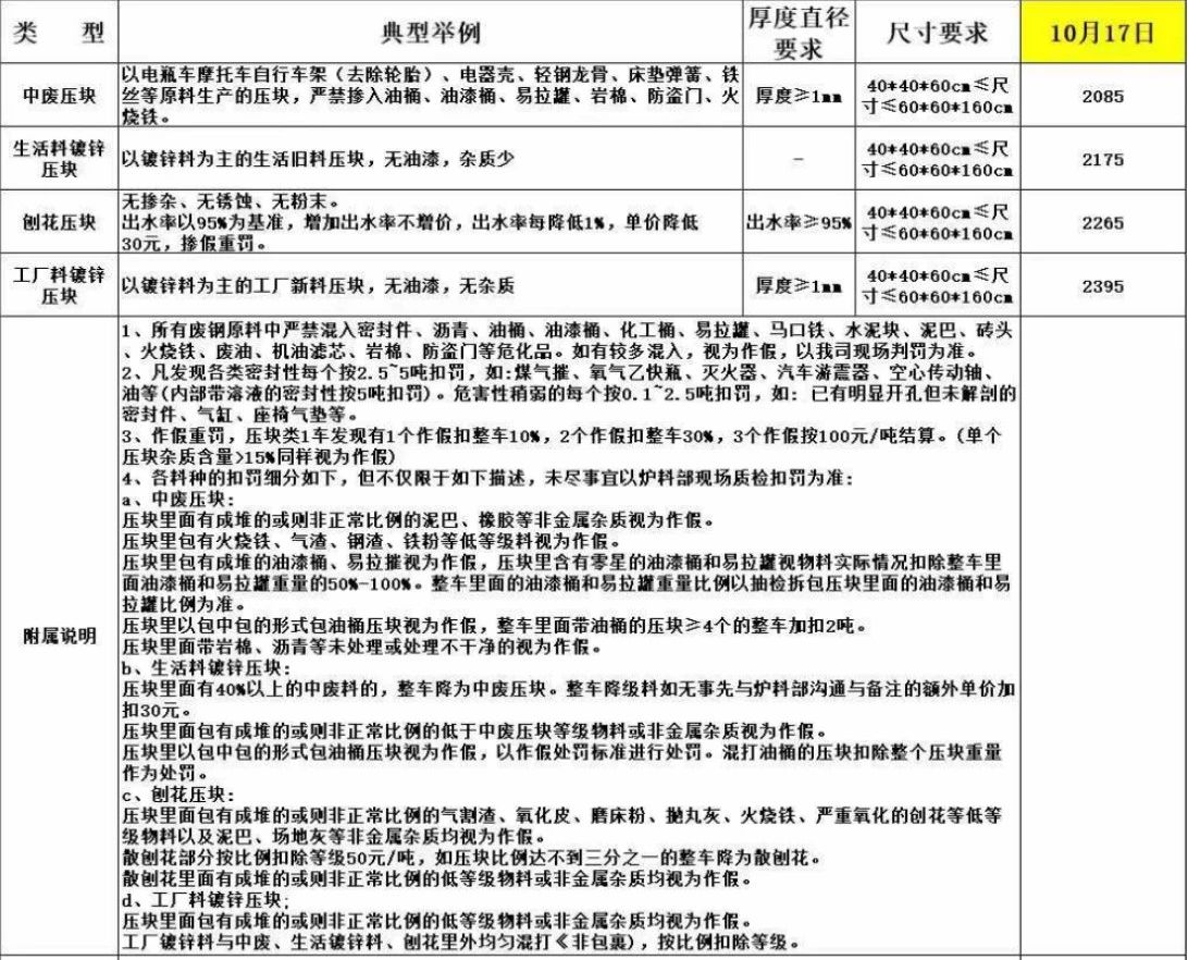 生铁****-****、大件生铁****、优重****、重废****-****、中废****-****、小废****-****、大钢刨****、数控/压块****、普刨****、破碎料****-****