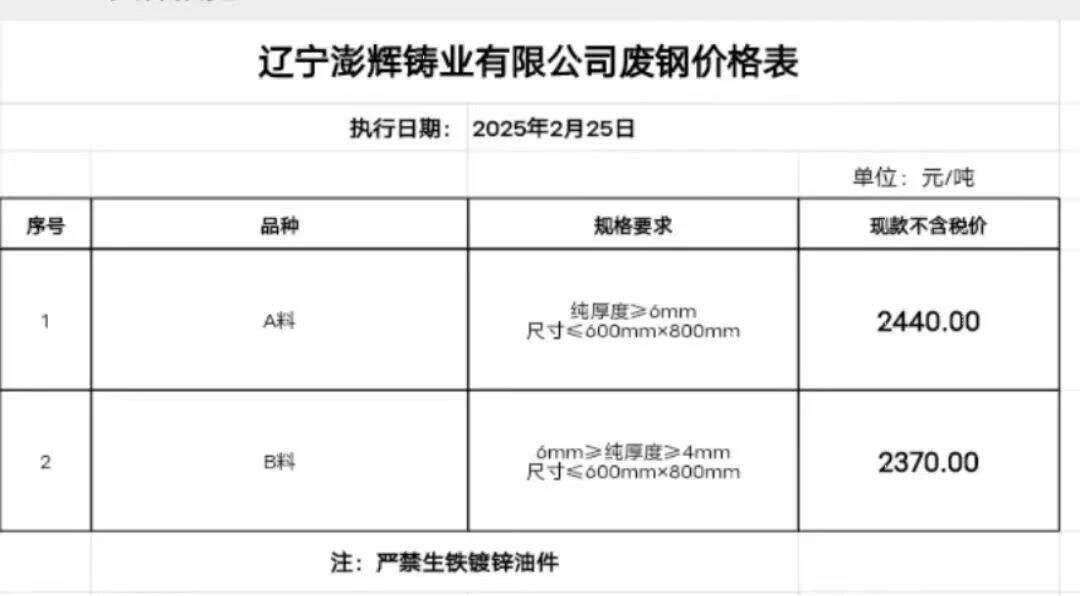 **日辽宁新澎辉废钢跌**,A料****、B料****