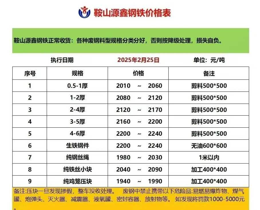 **日鞍山源鑫废钢跌**,*.*-*厚****-****、*-*厚****-****,*-*厚****-****,*-*厚以上****-****,*-*厚****-****,生铁钢件****-****