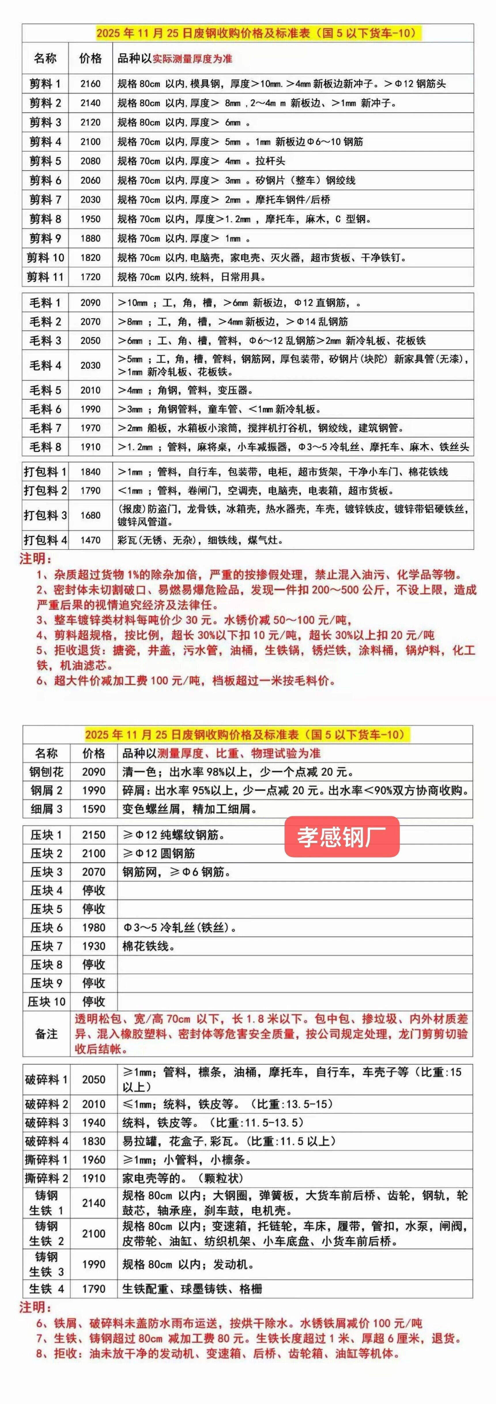 剪切料二****,剪切料三****,加工毛料一****,加工毛料二****,打包料****-****,铸钢生铁****-****