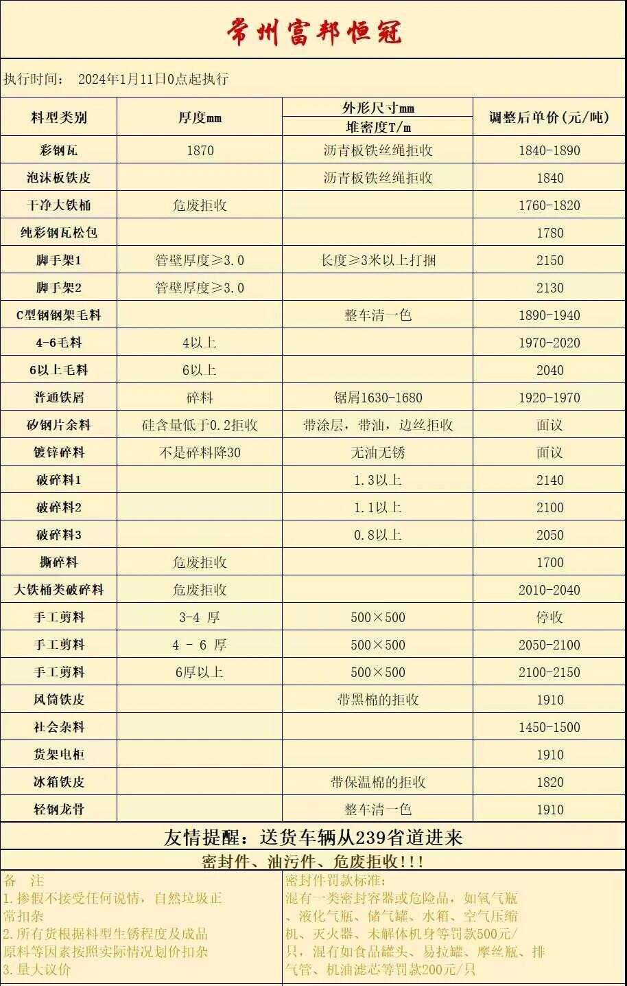 南通九圩港天泽码头现款收:*以上新钢板炉料****、毛料最高****气割毛料****;重废、工角槽****-****;**上直钢筋****;桥梁模板、拆船毛料****-****左右;*以上激光板****;彩钢瓦****-****;气割料、大件生熟铁看货定价。密封容器.含油废钢拒收。可带票,价格另议。联系电话*********** 入场人员请佩戴安全帽!